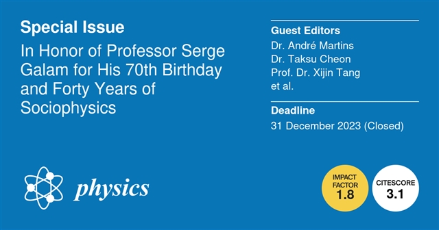 1982年,Serge Galam教授及其合作者发表了五篇论文,开辟了一个新的研究领域,他们将其命名为社会物理学。社会物理学本质上是运用物理学的思想、方法和理论来描述社会系统。如今,社会物理学已发展为物理学家、数学家与计算机科学家共同深耕的蓬勃研究领域。无论是运用简单行为规则、简化主体间互动,还是借助复杂网络、随机模型及其他适配大规模计算机模拟的方法,该领域都已展现出解决各类社会与政治问题的关键能力。为庆祝Serge Galam教授70岁生日以及社会物理学诞生40周年,期刊推出一期关于社会物理学及其诸多应用的特刊。