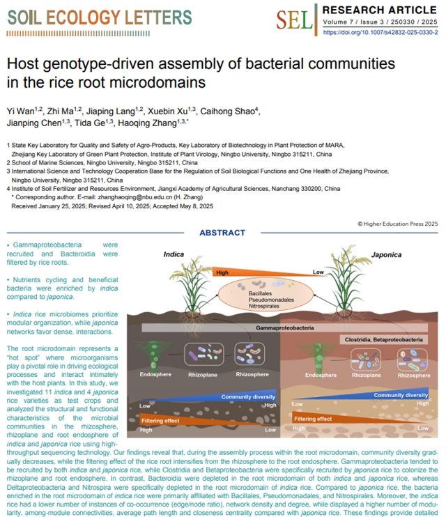SEL Research | 宿主基因型驱动的水稻根系微域细菌群落组装 |