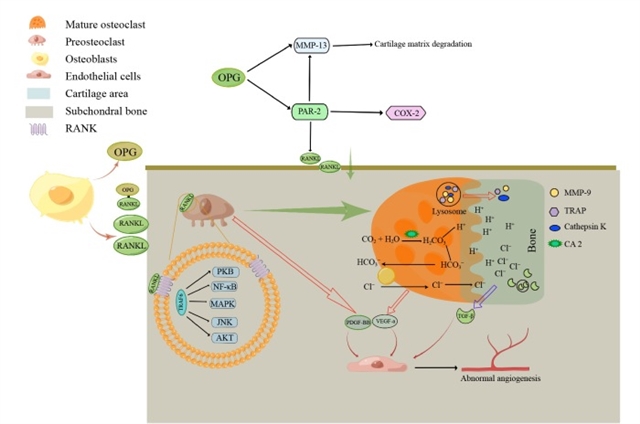 图4 OPG/RANKL/RANK信号通路在骨关节炎进展中的作用