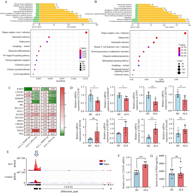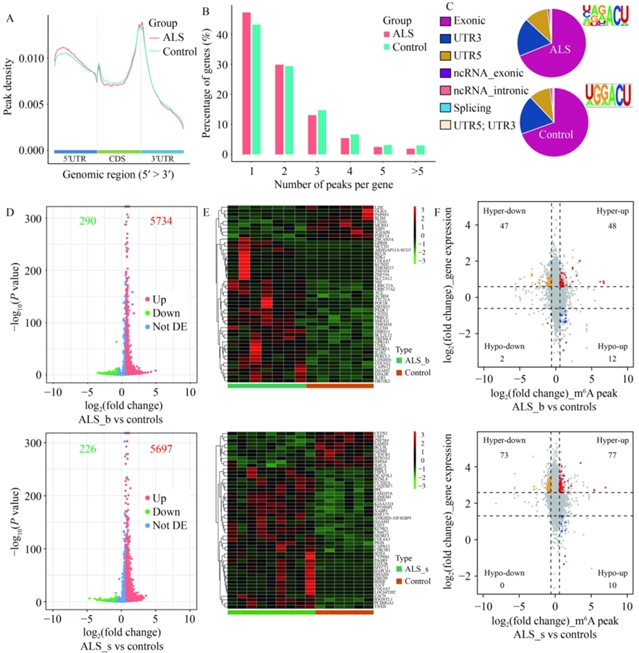 图2 肌萎缩侧索硬化症外周免疫细胞中的RNA差异甲基化与表达