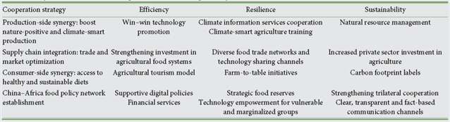 建立中非粮食政策网络:应建立高层对话机制 (如2024年中非合作论坛-北京行动计划),设立工作组解决粮食安全、气候适应等关键政策问题,聚焦数字基建、小农普惠金融等领域。需拓展双边与多边合作,联合其他发展中国家及机构,并鼓励第三方组织评估农业项目环境影响,建立透明可信的沟通渠道 (表2)。