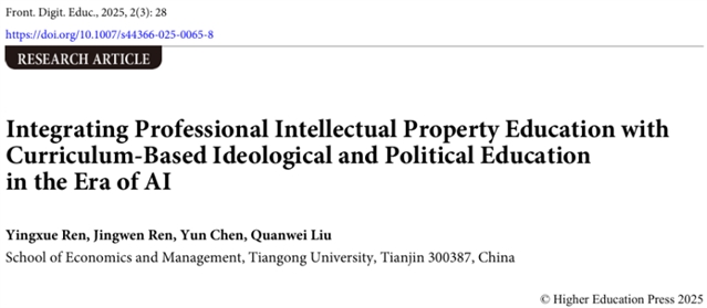 论文标题:Integrating Professional Intellectual Property Education with Curriculum-Based Ideological and Political Education in the Era of AI