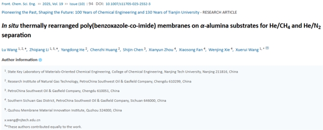 Lu Wang, Zhiqiang Li, Yangdong He, Chenzhi Huang, Shijin Chen, Xianyun Zhou, Xiaosong Fan, Wenjing Xie, Xuerui Wang. In situ thermally rearranged poly(benzoxazole-co-imide) membranes on α-alumina substrates for He/CH4 and He/N2 separation. Front. Chem. Sci. Eng., 2025, 19(10): 94 DOI:10.1007/s11705-025-2552-3