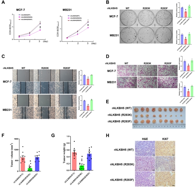 图6 ALKBH5 R283位点甲基化促进乳腺癌生长