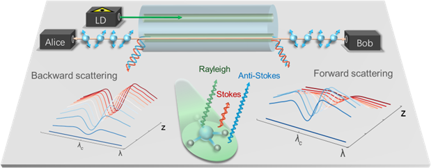 量子密钥分发作为实现信息绝对安全的重要手段,正逐步从实验室走向实际应用。然而,如何与现有的高容量经典通信系统协同工作,是迈向现实网络部署的关键挑战。多芯光纤作为未来光通信网络的重要发展方向,提供了天然的物理隔离,有望实现量子通信与经典通信的共存,但其在真实复杂环境下的共存特性尚缺乏系统验证。近日,香港理工大学博士后研究员吴琪,上海交通大学胡卫生教授与拉奎拉大学Cristian Antonelli, Antonio Mecozzi教授团队合作,首次在实地部署的多芯光纤中实现了量子密钥分发与110.8 Tbit/s双向经典通信的共存传输,突破了QKD系统实验室验证到实地部署的关键瓶颈。研究系统性地揭示了现场环境下量子信号受到自发拉曼散射噪声的干扰机制,提出并实验验证了跨芯拉曼噪声理论模型,指导了共存方案的优化配置。通过优化波长配置与传输方向,研究成功实现了25.2 km距离下的安全密钥生成,为未来QKD与经典通信融合网络的实地部署提供了理论指导与工程验证。该研究以“Integration of quantum key distribution and high-throughput classical communications in field-deployed multi-core fibers” 为题,发表于《Light:Science & Applications》。