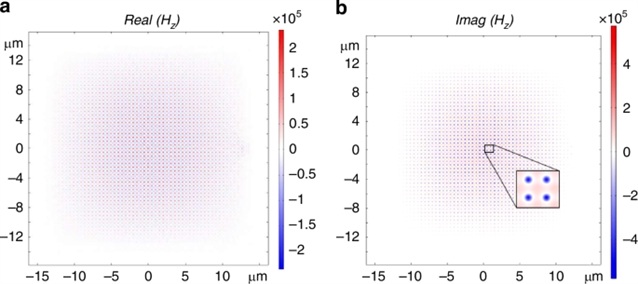 点构建磁单极模式,使 Hz场的虚部(对应Γ12)在12μm范围内保持均匀分布,为长程纠缠提供场分布基础(见图2)。这种基于能带工程的超材料设计方法,为量子光学元件的空间尺度拓展提供了新范式。