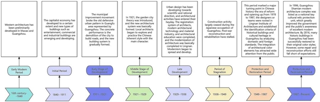 ▲ 图一:广州历史建筑发展演变时间轴 ©本文作者