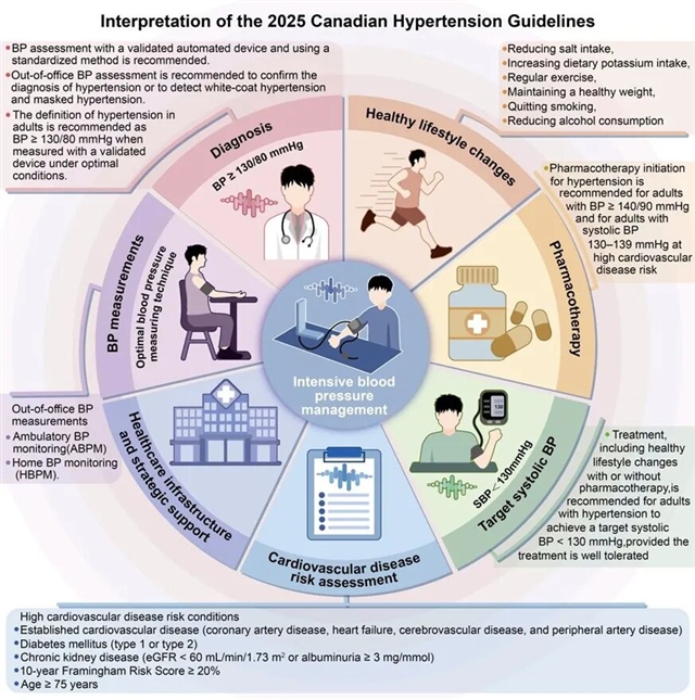 2025年5月,加拿大正式发布最新版《加拿大成人高血压诊断与治疗基层指南》。新指南将成人高血压的诊断标准下调至≥130/80 mmHg,此举引发世界范围的广泛关注,标志着全球高血压管理理念的又一次重大转变。指南的核心精神在于“防线前移”,强调对于血压在130-139/80-89 mmHg的人群进行积极的生活方式干预与其中高风险人群的药物干预。天津康汇医院杨宁医生深入解析了新指南的核心变化、循证依据,及其与其他国际指南的对比,并探讨了该指南对我国高血压防控的启示与挑战。