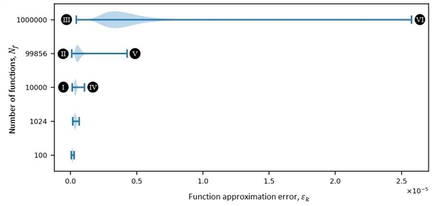图2:衍射光学处理器在不同目标非线性函数数量Nf(100-1,000,000)的误差分布