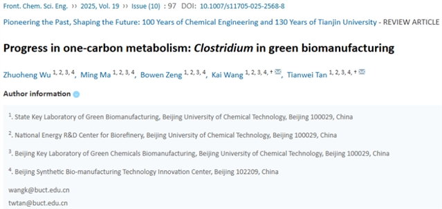 论文标题:Progress in one-carbon metabolism: Clostridium in green biomanufacturing