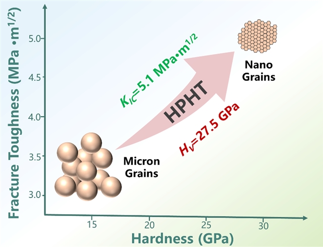 2. 由于纳米多晶结构陶瓷材料的霍尔-佩奇效应,大大提高了材料的硬度和断裂韧性,相较于微米级晶粒样品提高约45%,断裂韧性同时提高了70%。