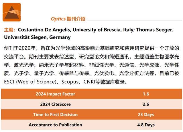 该奖项由 Optics 期刊编委会的资深专家组成评审委员会进行评选。