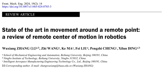 《Frontiers of Mechanical Engineering》2024年第19卷第2期的一篇题为“State of the art in movement around a remote point: a review of remote center of motion in robotics”的综述文章,对远程运动中心(RCM)技术进行了全面回顾,涵盖RCM的概念、背景、实现方法、应用及未来挑战等内容,为相关领域的研究和应用提供了全面的参考。