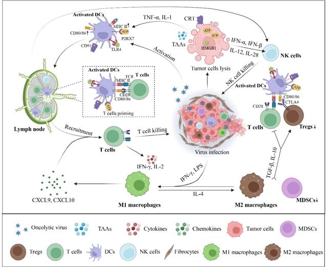 图3 溶瘤病毒可通过增强针对癌症的免疫反应提高抗肿瘤疗效