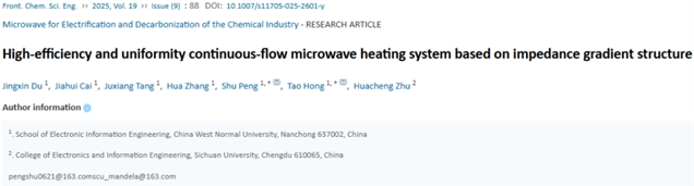Jingxin Du, Jiahui Cai, Juxiang Tang, Hua Zhang, Shu Peng, Tao Hong, Huacheng Zhu. High-efficiency and uniformity continuous-flow microwave heating system based on impedance gradient structure. Front. Chem. Sci. Eng., 2025, 19(9): 88 DOI:10.1007/s11705-025-2601-y