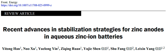 Yitong Han, Nuo Xu, Yuelong Yin, Ziqing Ruan, Yujie Shen, Shu Fang, Leixin Yang. Recent advances in stabilization strategies for zinc anodes in aqueous zinc-ion batteries. Front. Energy DOI:10.1007/s11708-025-0999-z