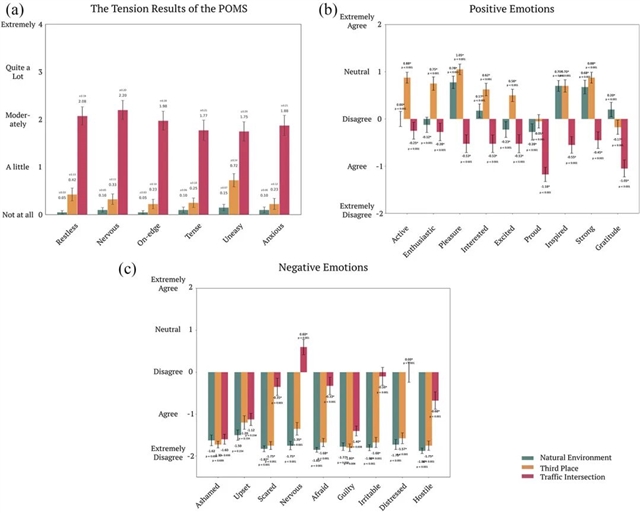 城市环境的诸多方面,尤其是绿色空间,已被证实对心理健康与福祉具有积极作用。然而,相较于研究已十分充分的 “自然” 环境效益,城市 “第三场所” 的疗愈潜力仍未得到足够关注。“第三场所” 指人们在家庭(第一场所)与工作场所(第二场所)之外聚集的公共空间,其通过促进社交互动与社区参与,为使用者的福祉提供支撑。本研究采用功能性近红外光谱(fNIRS)、Empatica E4 腕带、问卷调查及访谈法,对中国上海 40 名青年群体展开调研,结果显示:尽管作用机制存在显著差异,“第三场所” 在神经、心理与生理层面均展现出与自然环境相当的疗愈效果。其中,“第三场所” 通过情感路径助力心理健康,主要依托社交参与和环境设计催生 “愉悦感”;而自然空间则通过亲生物连接(biophilic connections)激发 “感恩感”。上述结论凸显了 “第三场所” 在青年心理健康支持中的重要价值,同时强调了社会基础设施干预的必要性。优化 “第三场所” 设计,有望构建更健康、低压力且情感积极的城市环境。