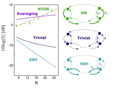 最后,团队展示了NTOS灵敏度的指数增强结果(如图5),揭示了灵敏度与晶格尺寸关系:NTOS的灵敏度随晶格尺寸增加而指数增长,与理论预测一致,进一步证实了NTOS的优越性能。此外,还对比了NTOS与其他类型晶格的灵敏度变化情况,突出了NTOS在灵敏度提升方面的独特优势,强调了非厄米性和拓扑性协同作用的重要性。