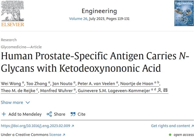 引用信息:Wei Wang, Tao Zhang, Jan Nouta, Peter A. van Veelen, Noortje de Haan, Theo M. de Reijke, Manfred Wuhrer, Guinevere S.M. Lageveen-Kammeijer. Human Prostate-Specific Antigen Carries N-Glycans with Ketodeoxynononic Acid [J]. Engineering, 2023, 26(7): 119–131.