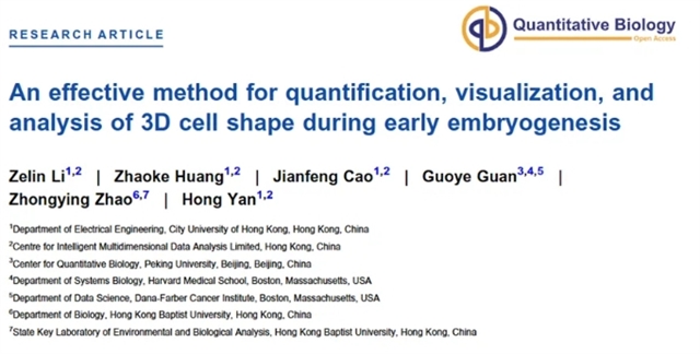 QB 香港城市大学严洪香港浸会大学赵中应团队合作提出一种早期胚胎发生过程中3D细胞形态的量化、可视化与分析方法 |