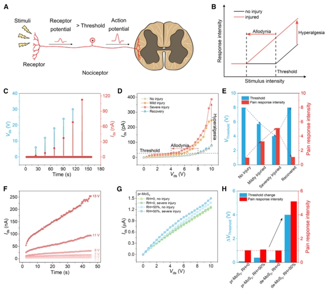图4:基于气体-受体协同作用的人工痛觉感受器。