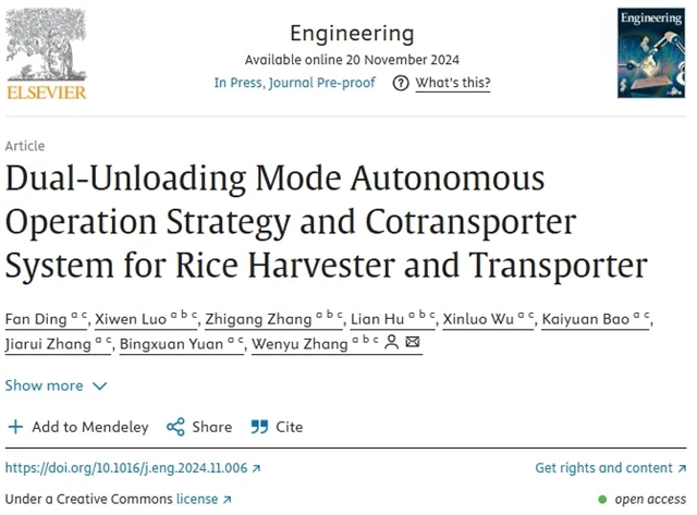 罗锡文院士团队新成果!双卸粮协同系统让水稻收获转运效率飙升 Engineering |