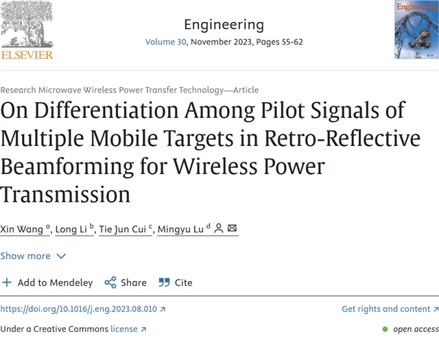 引用信息:Xin Wang, Long Li, Tie Jun Cui, Mingyu Lu. On Differentiation Among Pilot Signals of Multiple Mobile Targets in Retro-Reflective Beamforming for Wireless Power Transmission [J]. Engineering, 2023, 30(11): 55–62.