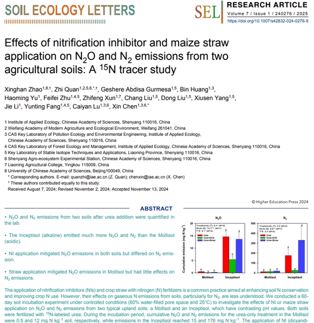 | SEL 农田施用硝化抑制剂和秸秆:基于土壤类型的N2O减排新策略 |