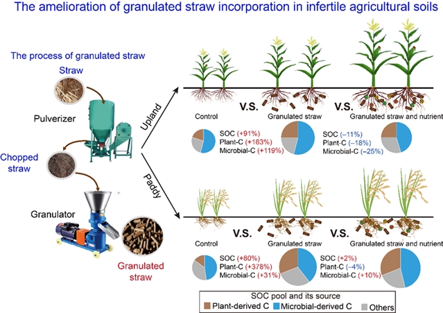论文标题:Carbon accumulation efficiency of granulated straw incorporation and its response to nutrient supplement in infertile agricultural soils: Evidence from biomarkers