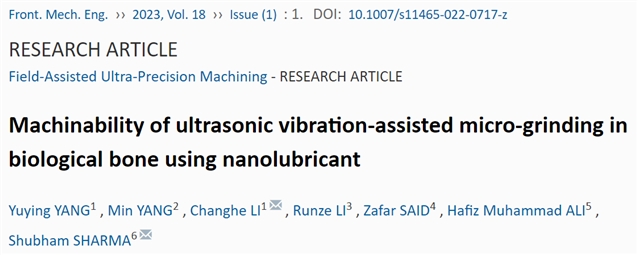 论文标题:Machinability of ultrasonic vibration-assisted micro-grinding in biological bone using nanolubricant