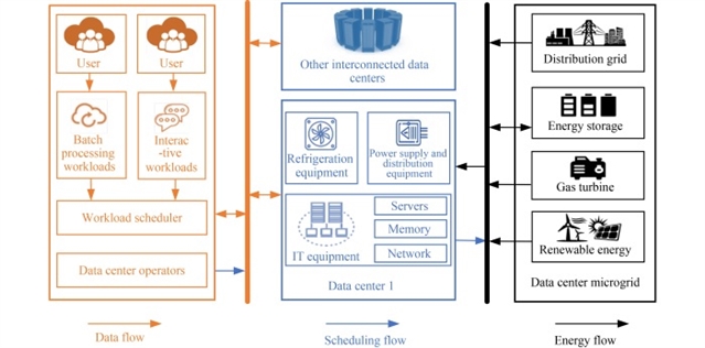 近年来,数据中心作为互联网和信息技术的关键部分发展迅猛,规模不断扩大,但其高能耗问题不容忽视。在“双碳”战略背景下,接入高比例可再生能源成为数据中心降低运营能耗、提升能源利用效率、实现绿色低碳转型的重要途径。而可再生能源的不确定性给数据中心的优化调度和能源管理带来重大挑战。当前研究多基于准确的负荷和可再生能源预测信息进行优化控制,但实际运行中预测值与真实值存在偏差,现有调度模型难以满足系统在线优化调整需求。本文旨在考虑多种灵活性资源,实现互联数据中心多时间尺度优化调度。