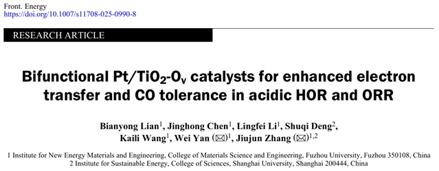 Bianyong Lian, Jinghong Chen, Lingfei Li, Shuqi Deng, Kaili Wang, Wei Yan, Jiujun Zhang. Bifunctional Pt/TiO2-Ovcatalysts for enhanced electron transfer and CO tolerance in acidic HOR and ORR. Front. Energy,