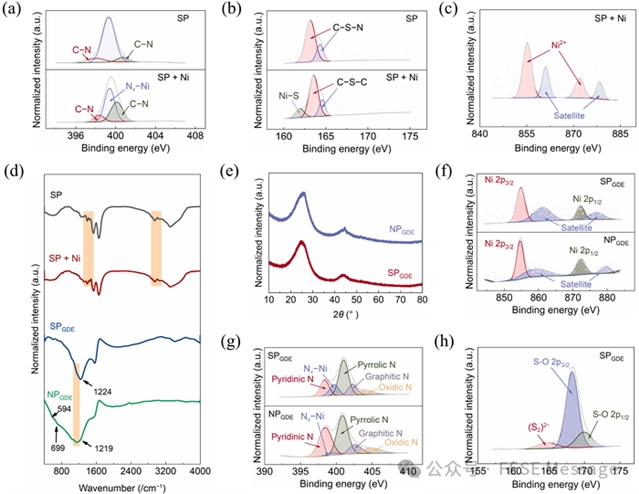 图2 SP、SP+Ni、SPGDE和NPGDE的化学成分与化学键