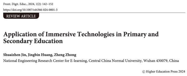 Jin, S., Huang, J. & Zhong, Z. Application of Immersive Technologies in Primary and Secondary Education. Front. Digit. Educ. 1, 142–152 (2024). https://doi.org/10.1007/s44366-024-0001-3
