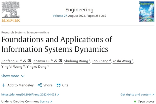 Jianfeng Xu, Zhenyu Liu, Shuliang Wang, Tao Zheng, Yashi Wang, Yingfei Wang, Yingxu Dang. Foundations and Applications of Information Systems Dynamics. Engineering, 2023, 27(8): 254–265