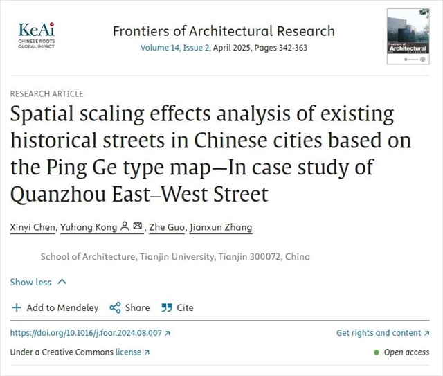 阅读原文请点击“Spatial scaling effects analysis of existing historical streets in Chinese cities based on the Ping Ge type map—In case study of Quanzhou East–West Street”