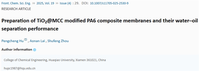 | FCSE | 前沿研究:TiO2@微晶纤维素改性PA6复合膜的制备及其水油分离性能研究 |