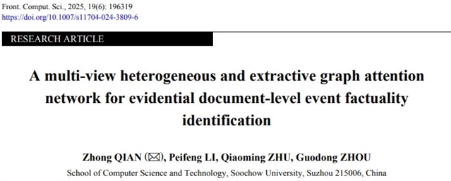 | FCS 苏州大学钱忠等:一个针对证据性篇章级事件事实性识别的多视图异构抽取式图注意力网络 |