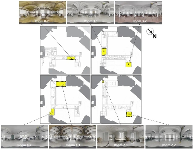 ▲ 图二:图像展示了从具有不同尺度的室内空间中心进行沉浸式拍摄时需要考虑的因素,并重点研究了空间内的取景比例和照明效果。©本文作者