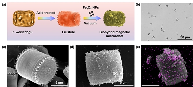 近日,中国科学院沈阳自动化研究所科研团队研制了生物混合硅藻微纳米机器人,采用深度学习技术对硅藻微纳米机器人、障碍物和目标进行检测,实现了实时路径规划、磁场驱动、路径跟踪及靶向递送。
