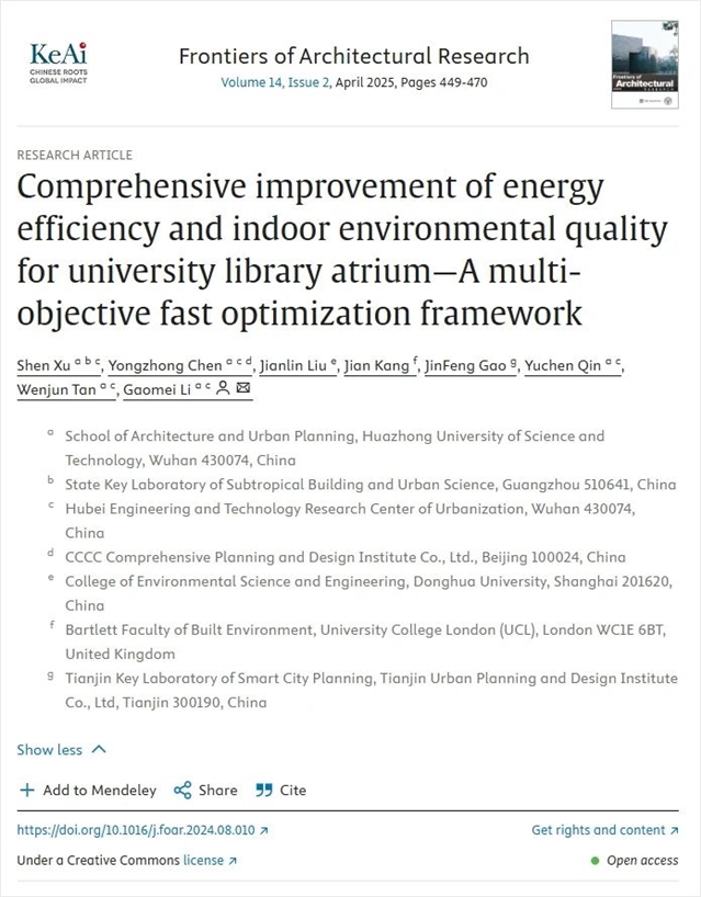 论文标题:Comprehensive improvement of energy efficiency and indoor environmental quality for university library atrium—A multi-objective fast optimization framework