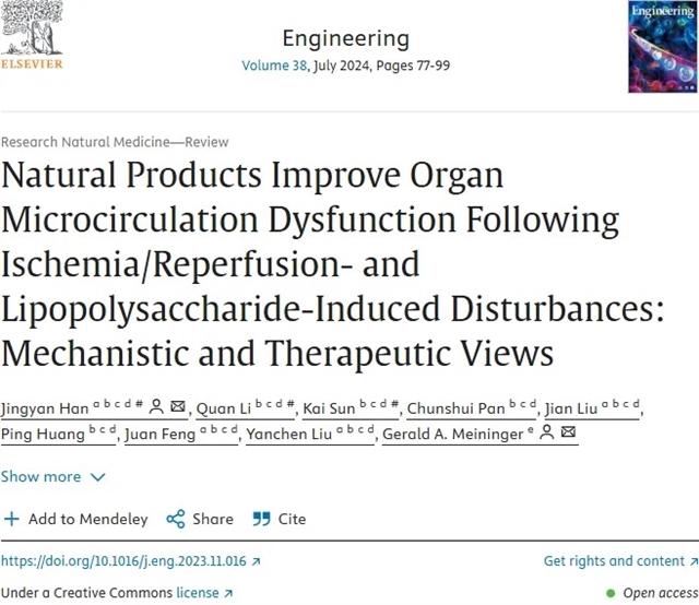 Jingyan Han, Quan Li, Kai Sun, Chunshui Pan, Jian Liu, Ping Huang, Juan Feng, Yanchen Liu, Gerald A. Meininger. Natural Products Improve Organ Microcirculation Dysfunction Following Ischemia/Reperfusion- and Lipopolysaccharide-Induced Disturbances: Mechanistic and Therapeutic Views. Engineering