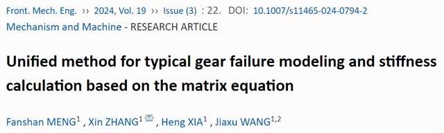 Fanshan MENG(孟凡善), Xin ZHANG(张新), Heng XIA(夏恒), Jiaxu WANG(王家序). Unified method for typical gear failure modeling and stiffness calculation based on the matrix equation. Front. Mech. Eng., 2024, 19(3): 22