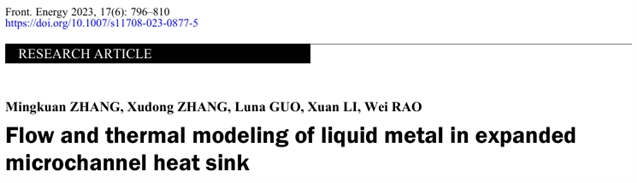 Mingkuan ZHANG, Xudong ZHANG, Luna GUO, Xuan LI, Wei RAO. Flow and thermal modeling of liquid metal in expanded microchannel heat sink. Front. Energy, 2023, 17(6): 796–810https://doi.org/10.1007/s11708-023-0877-5