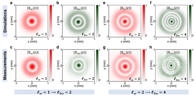 图4. 非相干涡旋光束的合成:在非线性频率转换过程中轨道角动量守恒。