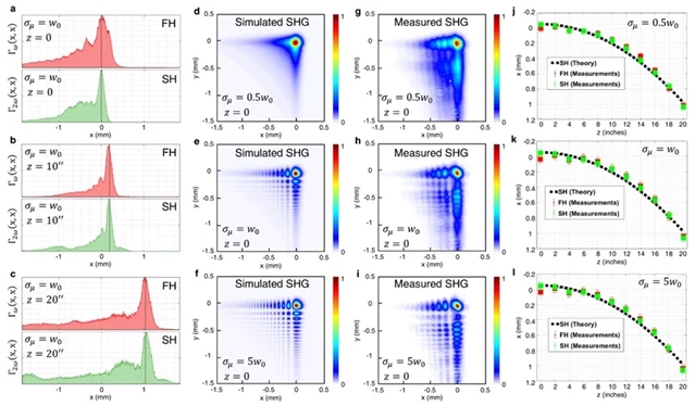 本研究成功实现了这一目标。研究团队提出的实验方法,不仅可在产生二次谐波的过程中主动设计与合成空间相干性,还将相干性从传统的 “被动接受” 转变为可自由调控的工具。图 1 清晰地展示了这一理念,无论是 “笑脸” 图案的相干性结构,还是构建非相干结构光束,比如如涡旋光束与艾里光束,都充分体现了该研究通过精准操控空间相干性,在二阶非线性系统中实现多种实际应用的能力。