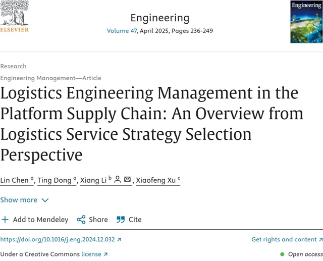 近日,武汉工程大学管理学院管理科学与工程系陈林副教授、硕士研究生董婷与北京理工大学李想教授、中国石油大学(华东)徐小峰教授合作在中国工程院院刊《Engineering》上发表了题为“Logistics Engineering Management in the Platform Supply Chain: An Overview from Logistics Service Strategy Selection Perspective”的论文。武汉工程大学管理学院管理科学与工程系陈林副教授为第一作者,硕士研究生董婷为第二作者,北京理工大学李想教授为通讯作者。