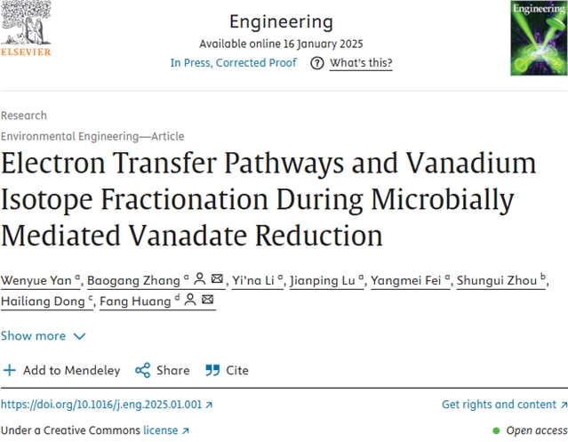 生物还原钒酸盐过程中的电子转移途径和钒同位素分馏 Engineering |