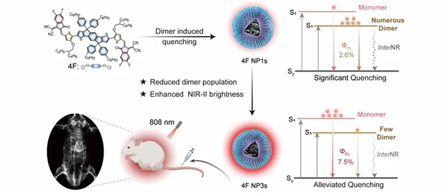 图1:抑制二聚体猝灭提升近红外二区发光亮度以实现高性能荧光成像