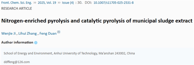 Wenjie Ji, Lihui Zhang, Feng Duan. Nitrogen-enriched pyrolysis and catalytic pyrolysis of municipal sludge extract. Front. Chem. Sci. Eng., 2025, 19(4): 30https://doi.org/10.1007/s11705-025-2531-8